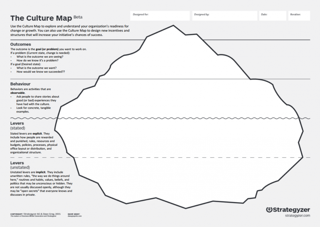 The Culture Mapping tool developed by Dave Gray helps you move from unproductive circular discussions about abstract concepts around values to tangible observable behaviour based analysis. You know there’s a problem, you know it’s cultural in nature, but you can’t see what it is.